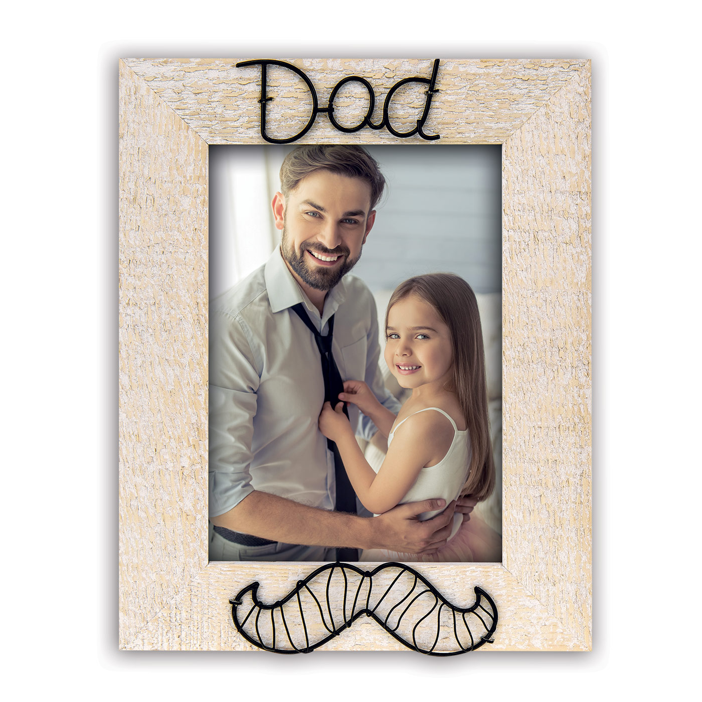 Cornice Alfonso in legno, colore marrone chiaro vintage, con scritta DAD in metallo nero a rilievo, con decoro a forma di baffo a rilievo, da tavolo, adatta alla festa del papà.