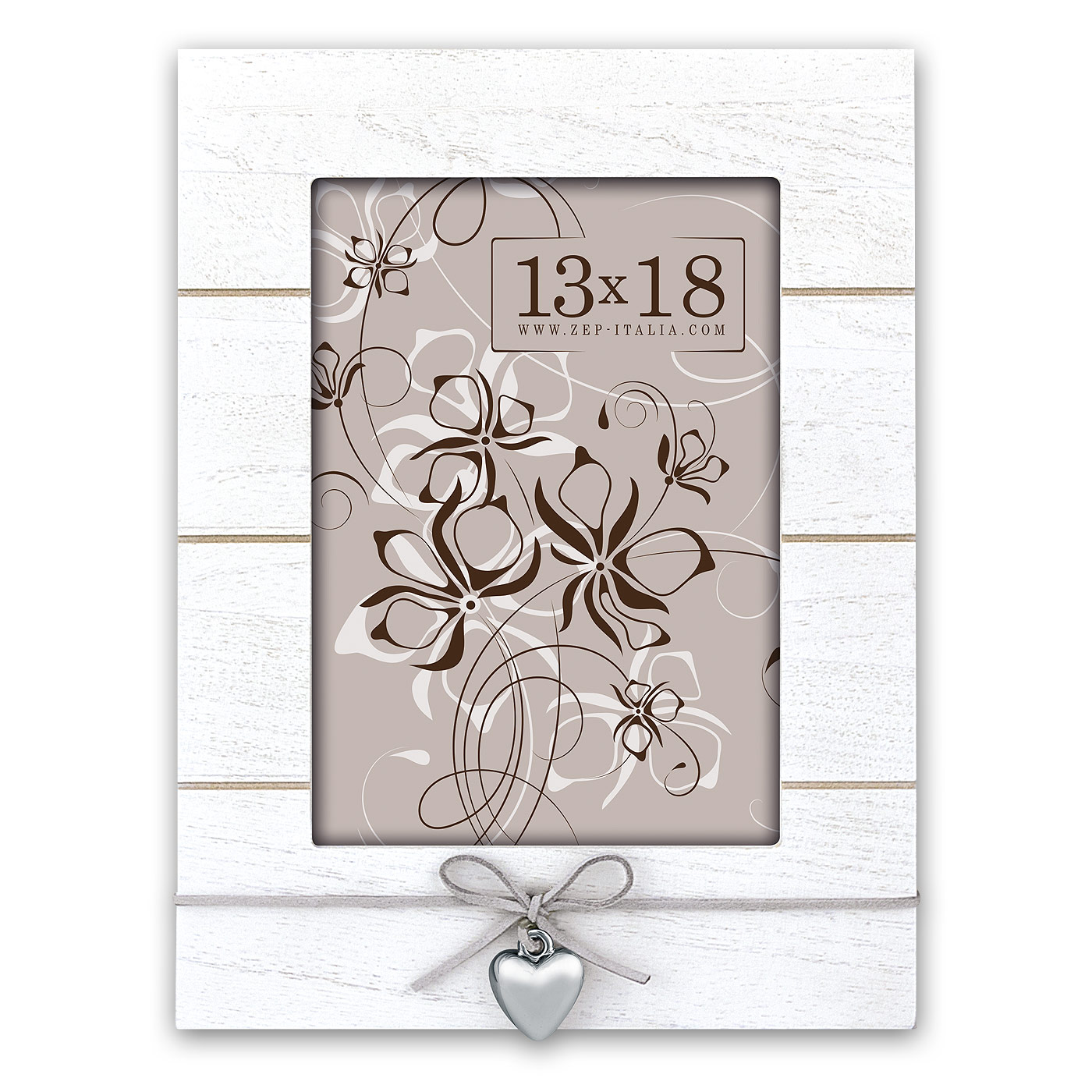 Cornice Arial Vertical in legno, colore bianco, con decorazione a forma di cuore in metallo e laccetto in similpelle, da tavolo, disponibile in vari formati, adatta per casa e ufficio.
